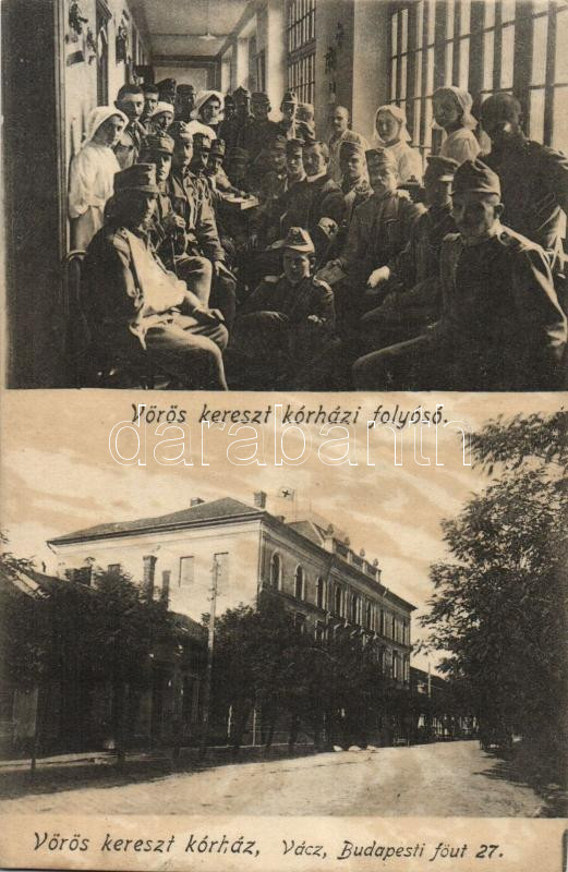 Vác, Budapesti Főút 27. Vöröskereszt kórház, folyosó, katonák (fl) https://www.darabanth.com/de/212-Fernauktion/212.0/Ansichtskarten/Ungarn~48/Vac-Budapesti-Fout-27-Voroskereszt-korhaz-folyoso-katonak-fl~II879694