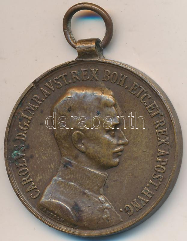1917. Bronz Vitézségi Érem "IV. Károly / Fortitudini" mellszalag nélkül. Szign: Kautsch T:2-