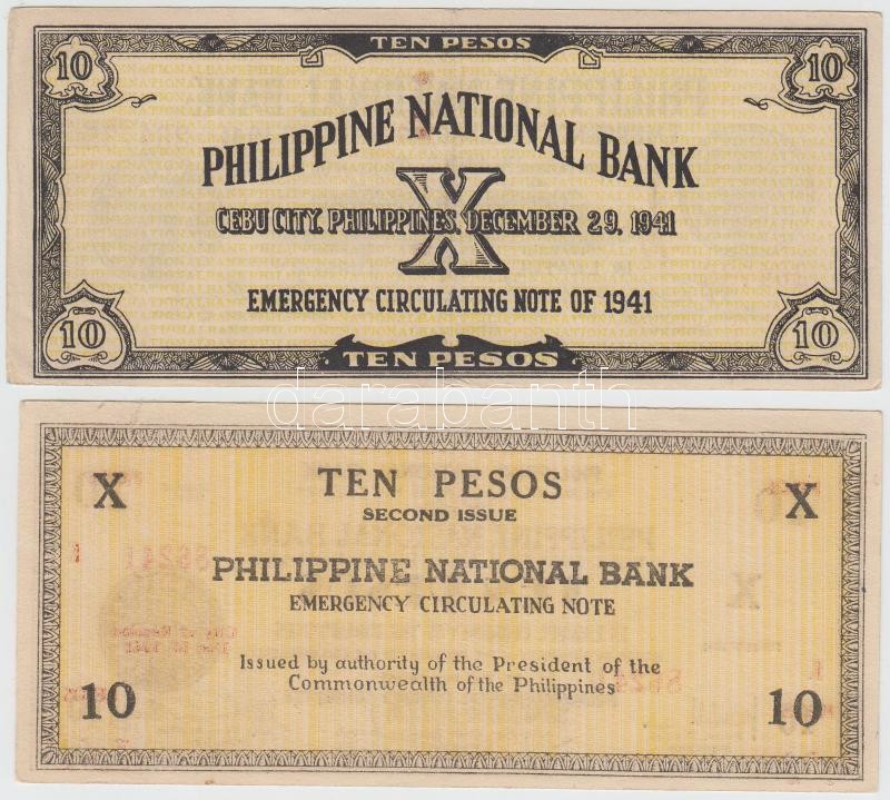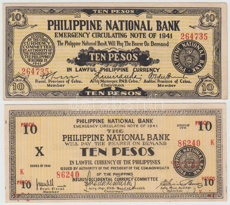 Philippines/Bacolod/Negros Occidental Provincial Currency Committee 1941. 10 Pesos + Philippines/Cebu 1941. 10 Pesos C:AU,F