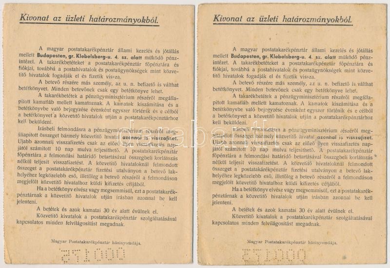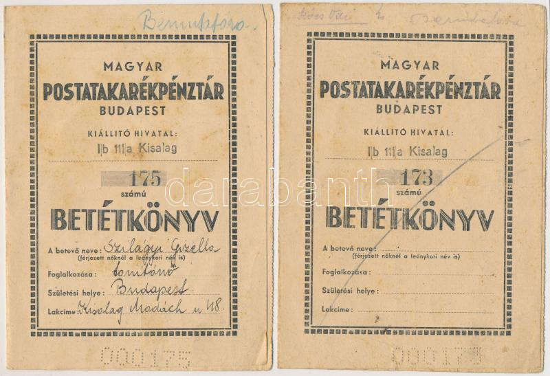 Budapest ~1950. "Magyar Postatakarékpénztár" betétkönyve (2x) https://www.darabanth.com/de/212-Fernauktion/212.0/Numismatik/Numismatische-Dokumente-und-Briefe~200019/Budapest-7E1950-Magyar-Postatakarekpenztar-betetkonyve-2x~II879858