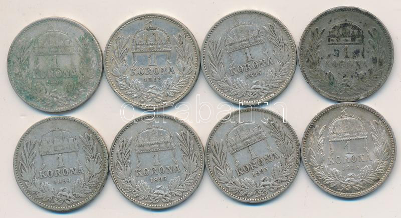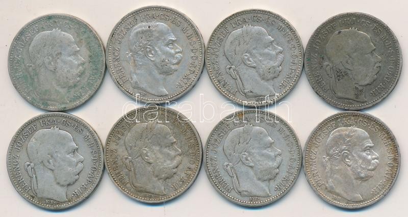 1893-1915. 1K Ag (8x) T:2-,3,3- https://www.darabanth.com/de/212-Fernauktion/212.0/Numismatik/Ungarische-Munzen~200008/1893-1915-1K-Ag-8x-T2-3-3-~II879851