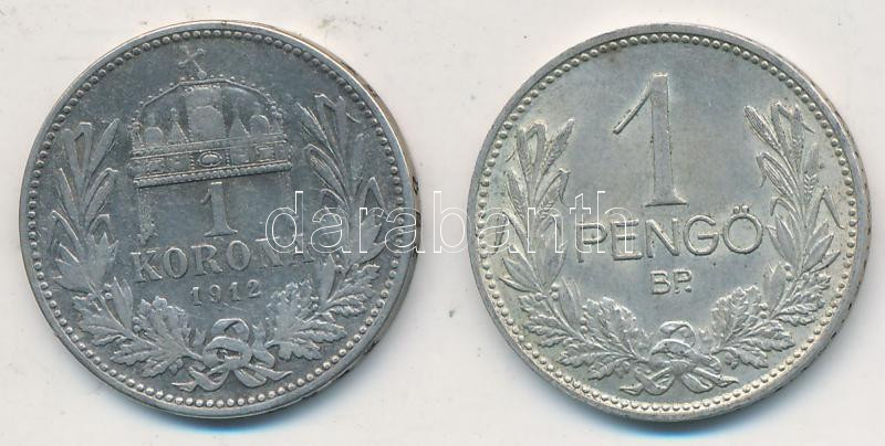 1912. 1K Ag "Ferenc József" + 1939. 1P Ag T:3,2 https://www.darabanth.com/de/212-Fernauktion/212.0/Numismatik/Ungarische-Munzen~200008/1912-1K-Ag-Ferenc-Jozsef-plus-1939-1P-Ag-T3-2~II883113