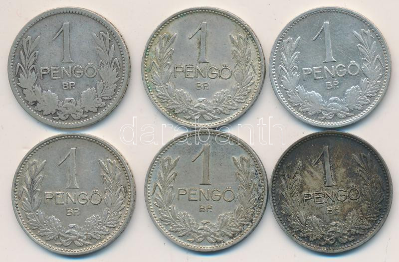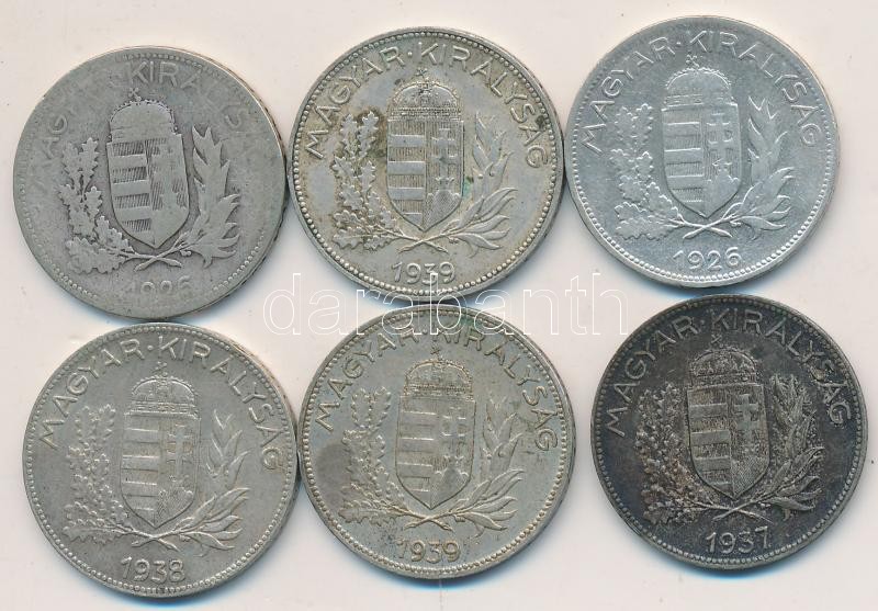 1926-1939. 1P Ag (6x) T:2,3,3- https://www.darabanth.com/de/212-Fernauktion/212.0/Numismatik/Ungarische-Munzen~200008/1926-1939-1P-Ag-6x-T2-3-3-~II879844