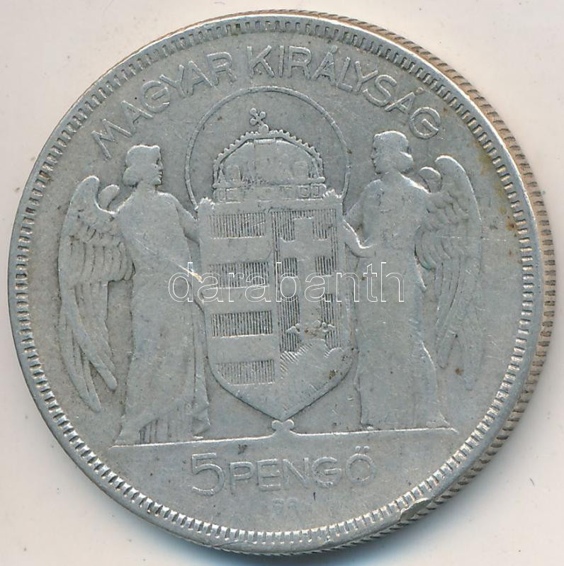 Beschreibung: 1930. 5P Ag "Horthy-jobbra" T:3