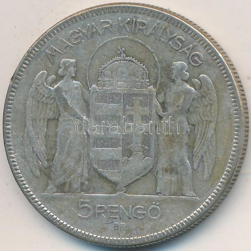 Beschreibung: 1930. 5P Ag "Horthy-jobbra" T:3