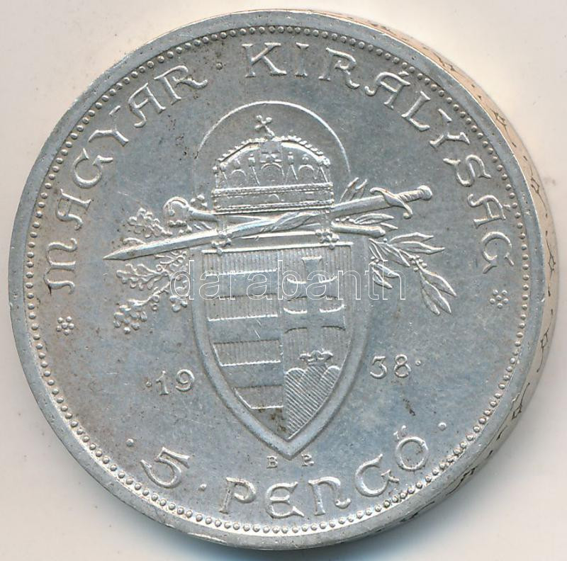 Adamo P8.1 https://www.darabanth.com/de/212-Fernauktion/212.0/Numismatik/Ungarische-Munzen~200008/1938-5P-Ag-Szent-Istvan-T2--3Cbr3EAdamo-P81~II879159