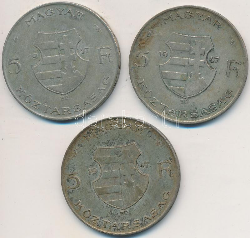 1947. 5Ft Ag "Kossuth" (3x) T:2-,3