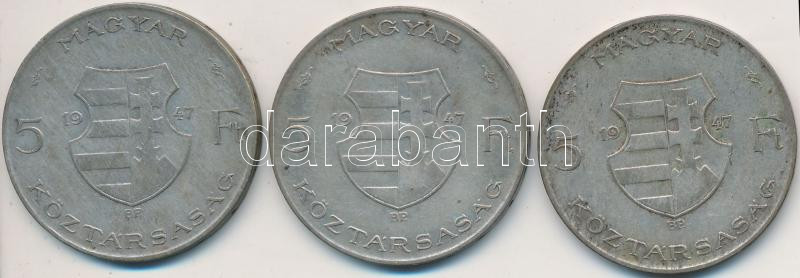1947. 5Ft Ag "Kossuth" (3x) T:2-,3
