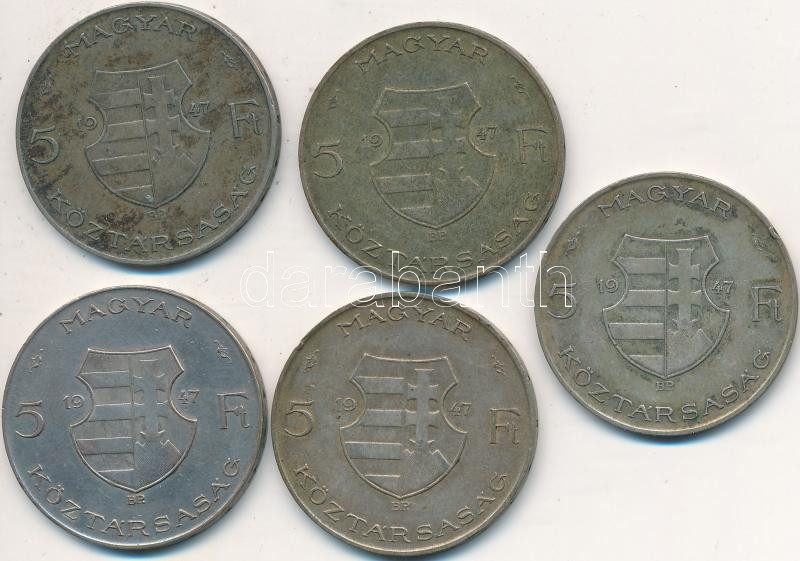 Beschreibung: 1947. 5Ft Ag "Kossuth" (5x) T:2-,3