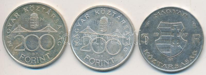 Beschreibung: 1947. 5Ft Ag "Kossuth" + 1993-1994. 200Ft Ag "MNB" T:2-,2