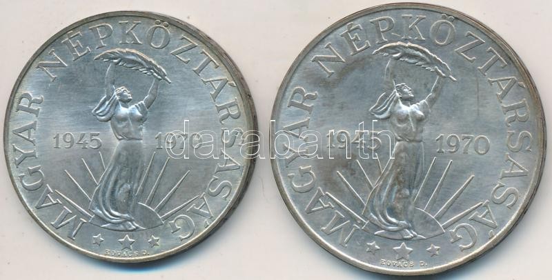 1970. 50Ft Ag + 100Ft "Felszabadulás" pár T:BU patina https://www.darabanth.com/de/212-Fernauktion/212.0/Numismatik/Ungarische-Munzen~200008/1970-50Ft-Ag-plus-100Ft-Felszabadulas-par-TBU-patina~II878566