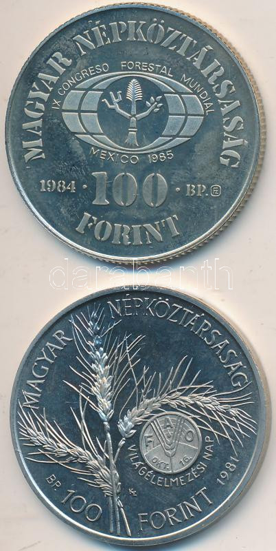 1981-1984. 100Ft "FAO" (2x) T:PP https://www.darabanth.com/de/212-Fernauktion/212.0/Numismatik/Ungarische-Munzen~200008/1981-1984-100Ft-FAO-2x-TPP~II878115