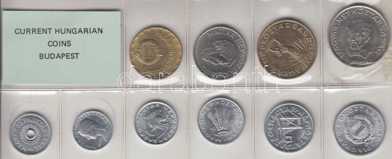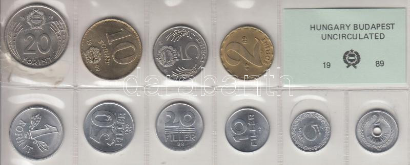 1989. 2f-20Ft 10db klf érmés forgalmi sor fóliatokban T:1 https://www.darabanth.com/de/212-Fernauktion/212.0/Numismatik/Ungarische-Munzen~200008/1989-2f-20Ft-10db-klf-ermes-forgalmi-sor-foliatokban-T1~II879027