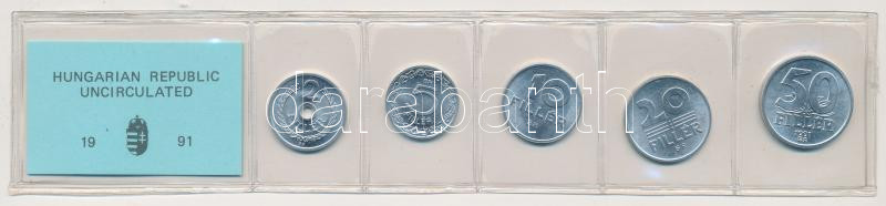 1991. 2f-50f 5klf db forgalmi sor fóliában T:1 https://www.darabanth.com/de/212-Fernauktion/212.0/Numismatik/Ungarische-Munzen~200008/1991-2f-50f-5klf-db-forgalmi-sor-foliaban-T1~II879060