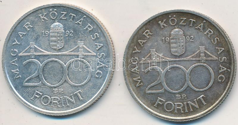 Beschreibung: 1992. 200Ft Ag "MNB" (2x) T:2-