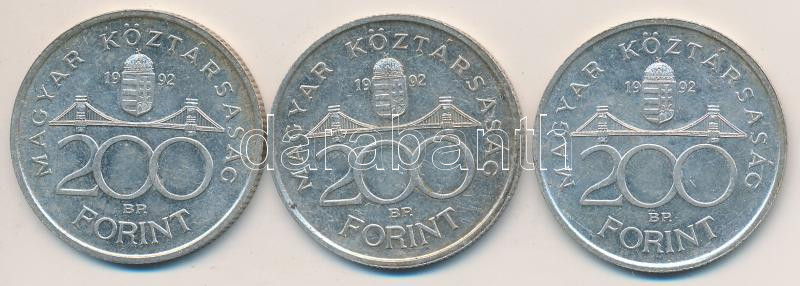Beschreibung: 1992. 200Ft Ag "MNB" (3x) T:2-