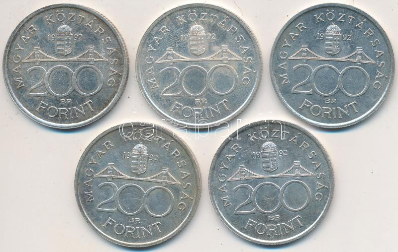1992. 200Ft Ag "MNB" (5x) T:2,2-