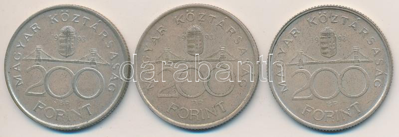 Beschreibung: 1993. 200Ft Ag "MNB" (3x) T:2,2-