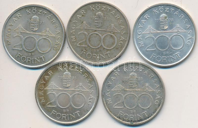 Beschreibung: 1993. 200Ft Ag "MNB" (5x) T:2,2-
