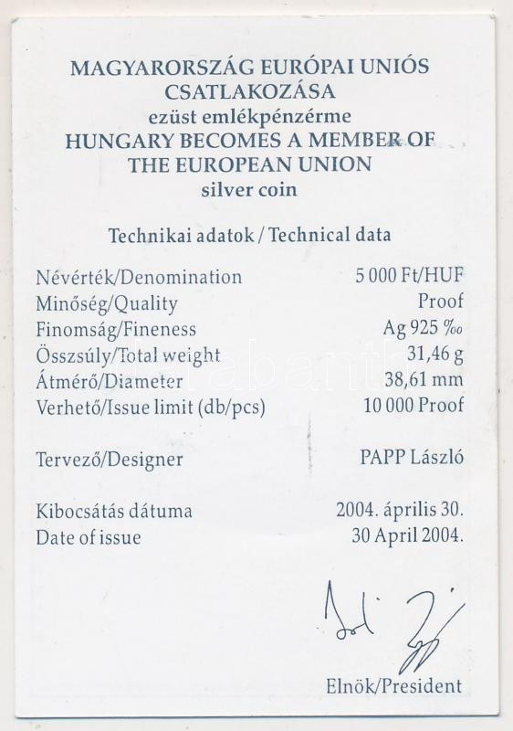 Adamo E... https://www.darabanth.com/de/212-Fernauktion/212.0/Numismatik/Ungarische-Munzen~200008/2004-5000Ft-Ag-Magyarorszag-az-EU-tagja-TPP-Tanusitvannyal-3Cbr3EAdamo-EM190~II878331