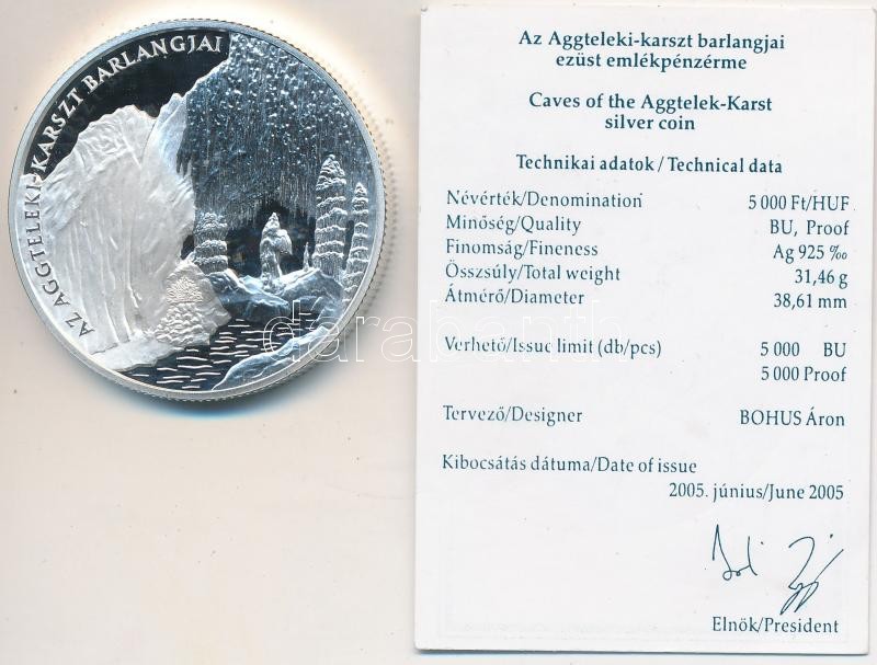 Beschreibung: 2005. 5000Ft Ag "Aggteleki-karszt barlangjai" T:PP Tanúsítvánnyal!