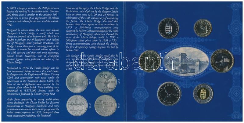 2009. 5Ft-200Ft "Lánchíd" 6klf darabból álló forgalmi érme sor dísztok... https://www.darabanth.com/de/212-Fernauktion/212.0/Numismatik/Ungarische-Munzen~200008/2009-5Ft-200Ft-Lanchid-6klf-darabbol-allo-forgalmi-erme-sor-disztokban-TBU-3Cbr3E~II877677