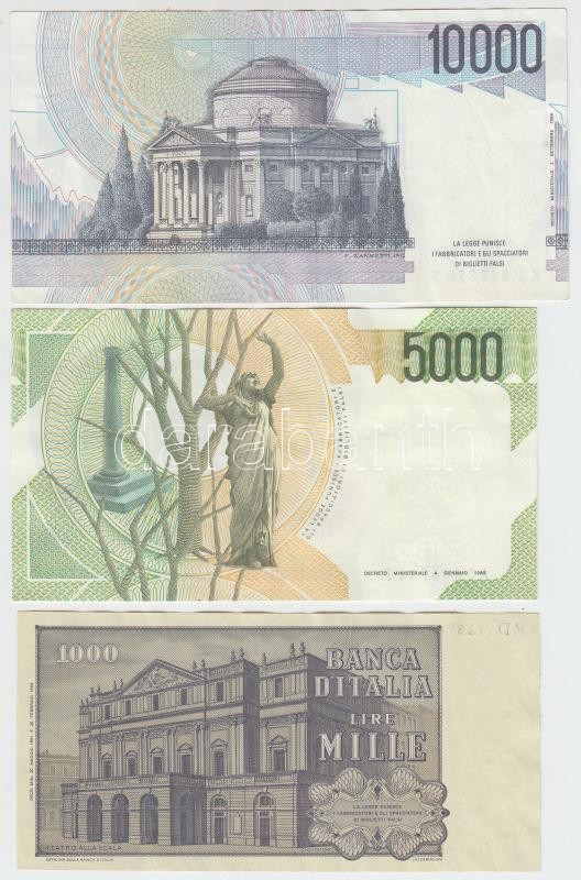 Beschreibung: Olaszország 1969. 1000L + 1985. 5000L + 1984. 10.000L T:I,II