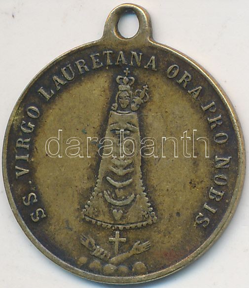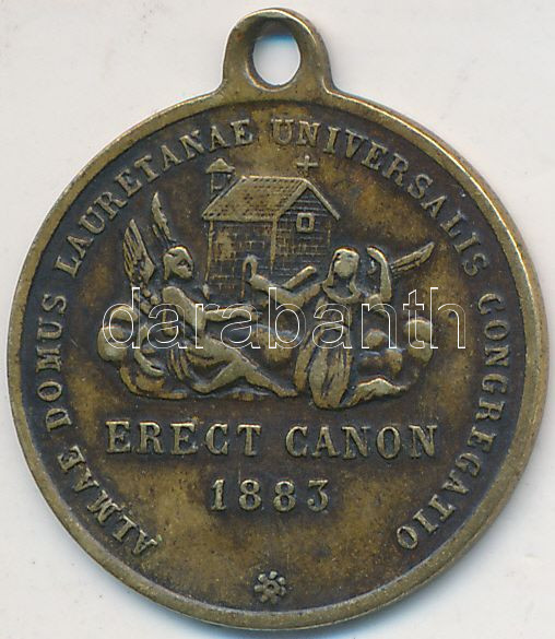 Italy 1883. "ALMAE DOMUS LAURETANAE UNIVERSALIS CONGREGATIO EREGT. CANON 1883 / SS.VIRGO LAURETANA ORA PRO NOBIS" metal pendant (21mm) C:XF