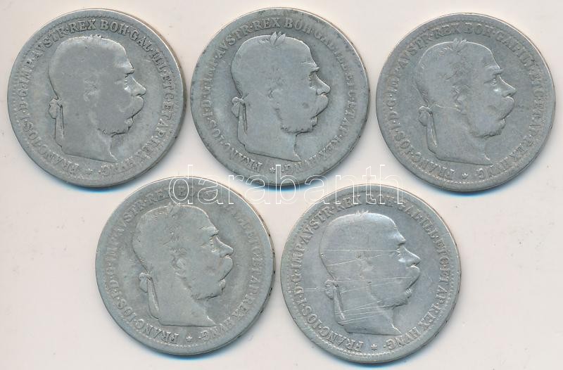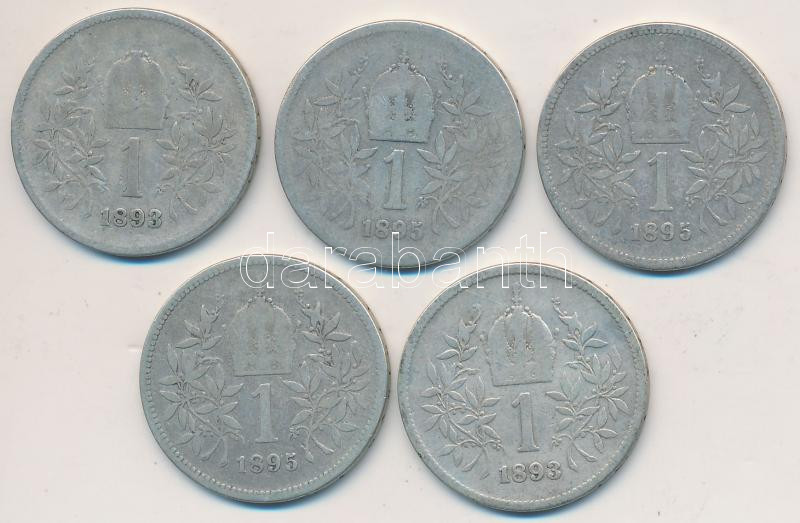 Beschreibung: Ausztria 1893-1895. 1K Ag (5x) T:2-,3