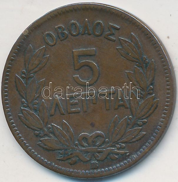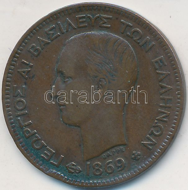 Greece 1869. 5 Lepta Cu "Georg... https://www.darabanth.com/de/212-Fernauktion/212.0/Numismatik/Weltweit-Munzen~200024/Gorogorszag-1869-5L-Cu-I-Gyorgy-T2-3Cbr3EGreece-1869-5-Lepta-Cu-George-I-CXF-3Cbr3EKrause~II879490