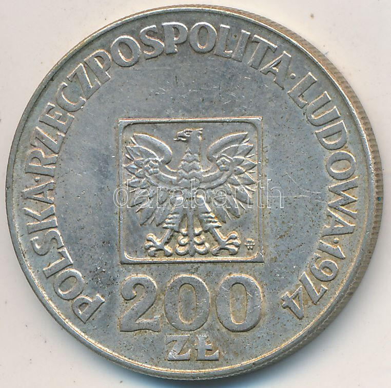 Poland 1974. 200 Zlotych Ag "30th Anniversary - Polish Peoples Republic" C:VF