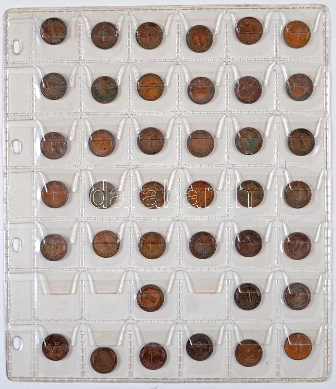Beschreibung: NSZK 1949-1980. 1pf (68x) + 1950-1980. 2pf (83x) + 1949-1995. 10pf (88x) + 1949-1994. 50pf (55x) gyűrűs éremtartó albumba rendezve T:vegyes