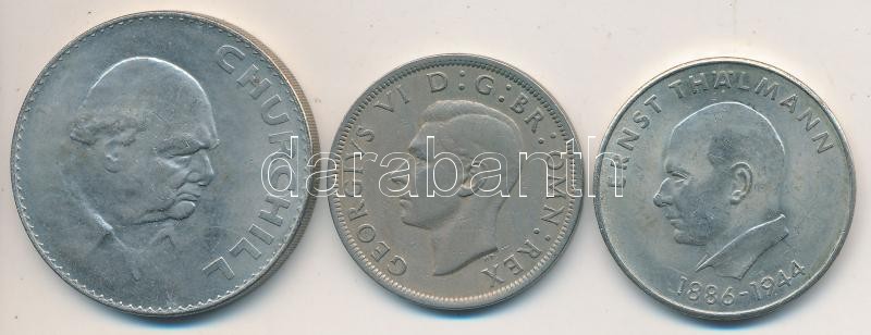 Great Britain 1951. 1/2 Crown "George VI" + 1965. 1 Crown "Sir Winston Churchill" + GDR 1971. 20 Mark "Ernst Thälmann" C:mixed