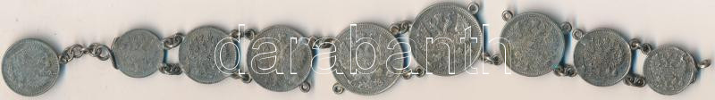 Oroszország 1908-1912. 5k Ag (2x) + 1910-1914. 10k Ag (3x) + 1912-1913. 15k Ag (2x) + 1913-1914. 20k Ag (2x) karkötőként összefűzve T:2,2-,3