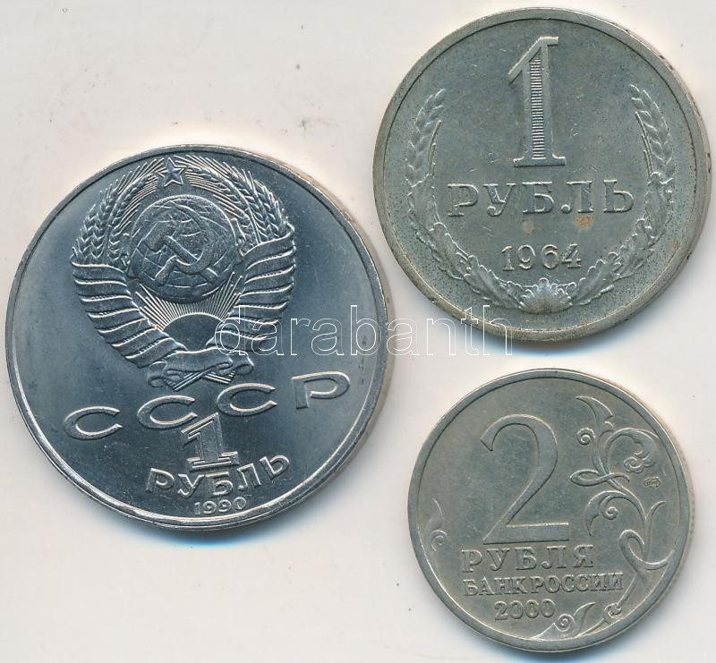 Russia 1964. 1 Roubl... https://www.darabanth.com/de/212-Fernauktion/212.0/Numismatik/Weltweit-Munzen~200024/Oroszorszag-1964-1R-plus-1990-1R-plus-2000-2R-T1-2-3Cbr3ERussia-1964-1-Rouble-plus-1990-1-Rouble-plus-200~II877936