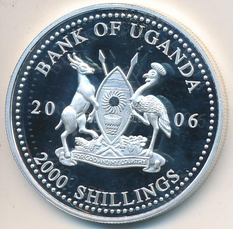 Uganda 2006. 2000 Shilling Ag "Hall of Fame of football - France 1990s / Eric Cantona" C:PP With certificate