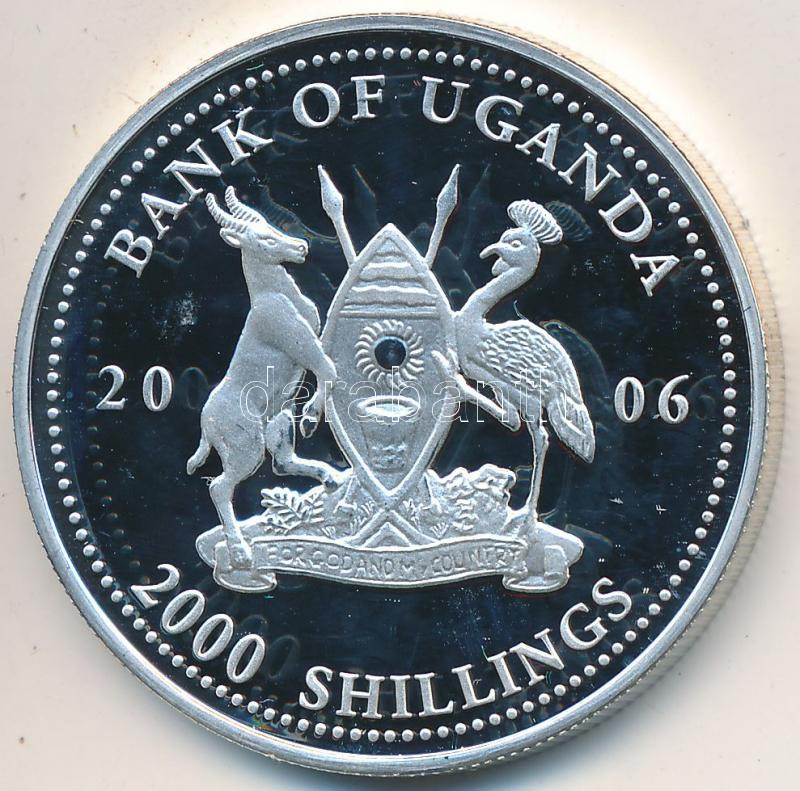 Uganda 2006. 2000 Shilling Ag "Hall of Fame of football - Germany 1970s / Franz Beckenbauer" C:PP With certificate