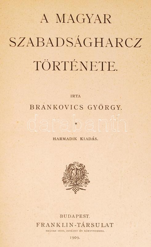 Brankovics György: A magyar szabadságharc története. Hazafias könyvtár. Harmadik kiadás. Bp., 1909, Franklin. Aranyozott egészvászon kötés, illusztrált, enyhén kopottas állapotban.