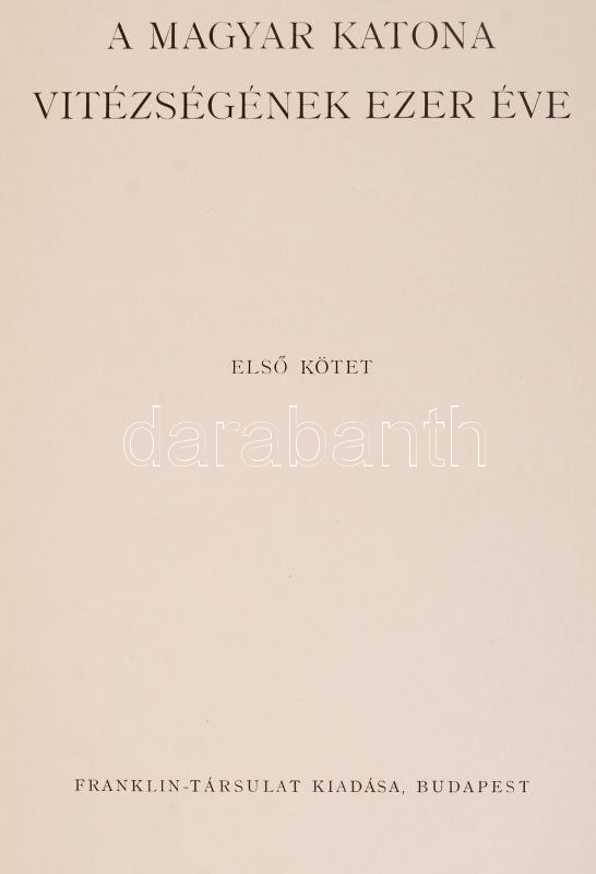 Pilch Janő(szerk.): A magyar katona vétézségének ezer éve I-II. kötet. 435 képpel, vázlattal és 10 melléklettel. Bp., Franklin. Kiadói aranyozott egészvászon kötés, illusztrált, kihajtható térképmelléklettel, gerincnél enyhén kopott, jó állapotban.