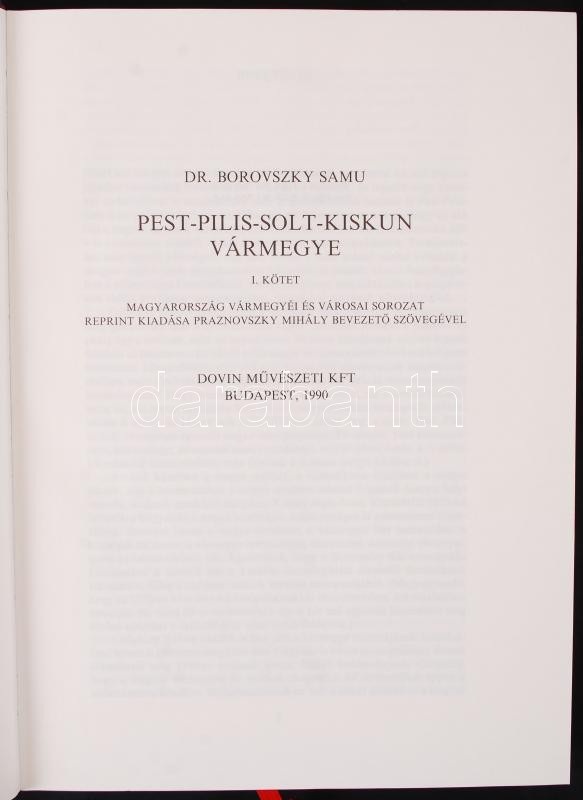 Dr. Borovszky Samu: Pest-Pilis-Solt-Kiskun vármegye I-II. kötet, Magyarország vármegyéi és városai sorozat reprint kiadása Praznovszky Mihály bevezető szövegével. Bp., 1990, Dovin Művészeti Kft. Kiadói aranyozott egészvászon kötés, védőborítóval, jó állapotban.