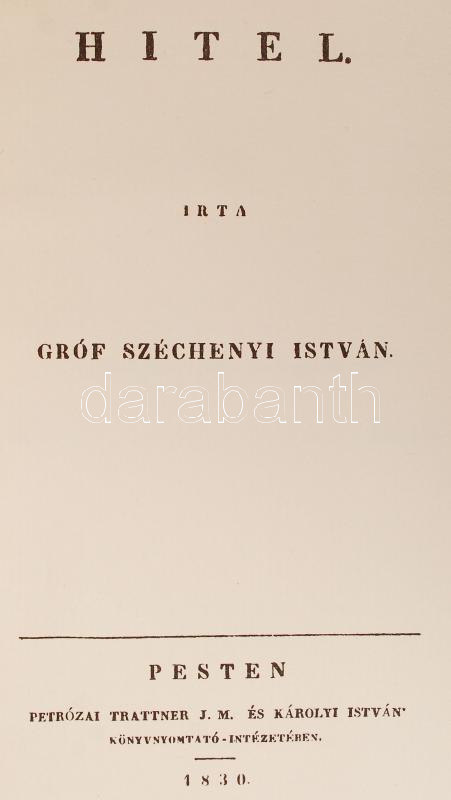 Gróf Széchenyi István: Hitel. Honunk szebblelkű asszonyainak. Hasonmás... https://www.darabanth.com/de/213-Fernauktion/213.0/Andere-Sammelgebiete/Bucher-Sonstige-Raritaten~41/Grof-Szechenyi-Istvan-Hitel-Honunk-szebblelku-asszonyainak-Hasonmas-kiadas-Pesten-1979-H~II878823