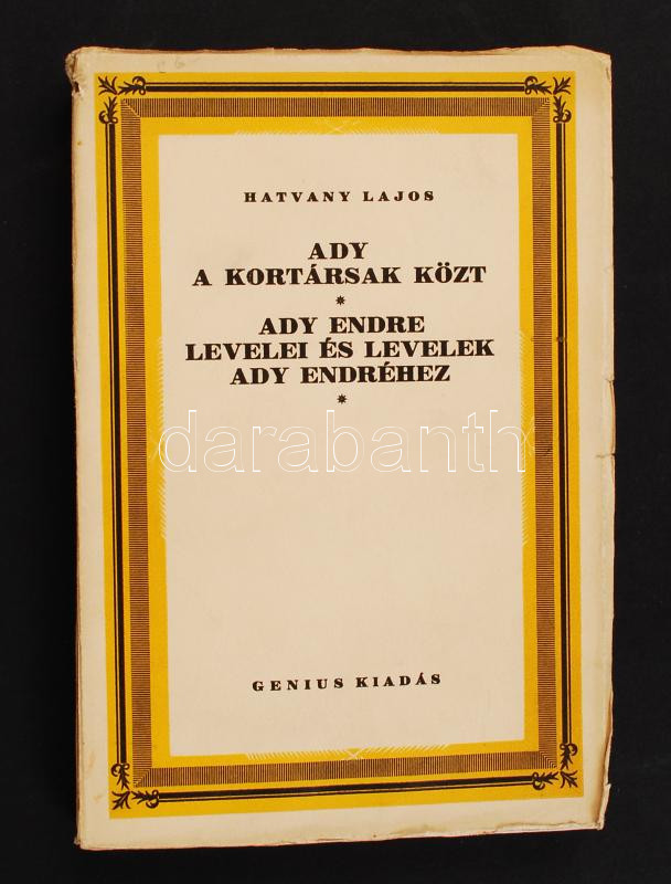 Hatvany Lajos: Ady a kortársak közt, Ady Endre levelei és levelek Ady ... https://www.darabanth.com/de/213-Fernauktion/213.0/Andere-Sammelgebiete/Bucher-Sonstige-Raritaten~41/Hatvany-Lajos-Ady-a-kortarsak-kozt-Ady-Endre-levelei-es-levelek-Ady-Endrehez-Bp-Genius-Kiad~II890617