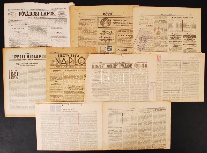 1867-1939 Különböző korabeli napilapok egyes számai (Tisztviselő Napló, Fővárosi Lapok, Pesti Hírlap, Nagyváradi Napló, Független Hajdúság, A Budapesti Közlöny Hivatalos Értesítője)