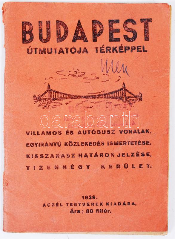 1939 Budapest útmutatója térképpel - Villamos és autóbusz vonalak, egy... https://www.darabanth.com/de/213-Fernauktion/213.0/Andere-Sammelgebiete/Drucksachen~12/1939-Budapest-utmutatoja-terkeppel--Villamos-es-autobusz-vonalak-egyiranyu-kozlekedes-is~II837342