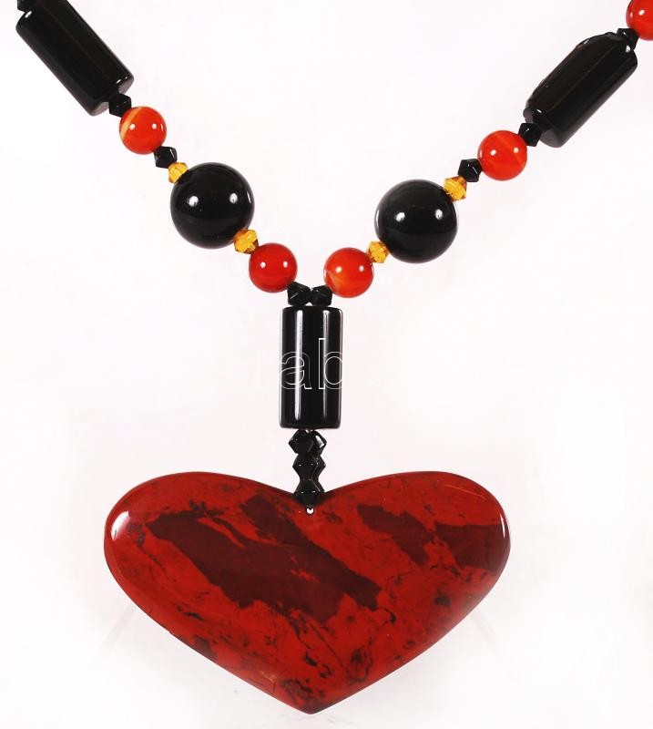 Fűzött gyöngy nyaklánc szív alakú medállal, h: 70 cm /