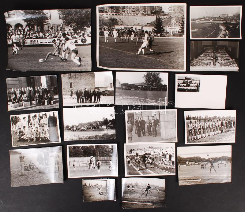 Beschreibung: cca 1960-1970 19 db labdarúgással kapcsolatos fotó, nagyrészt hazai csapatokról, Pl Komló, külföldi szereplések is