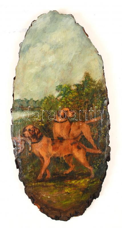 Jelzés nélkül: Vadász kutyák. Olaj, fűrészelt fa törzs szeleten, 53×22... https://www.darabanth.com/de/213-Fernauktion/213.0/Andere-Sammelgebiete/Gemalde-und-Grafiken~1/Jelzes-nelkul-Vadasz-kutyak-Olaj-fureszelt-fa-torzs-szeleten-53C39722-cm~II890934