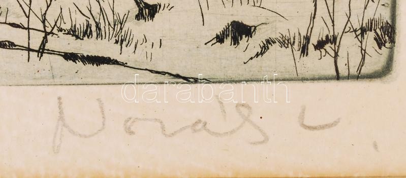 Beschreibung: Novák Lajos (1927-1989): Tél. Rézkarc, papír, jelzett, 28×40 cm