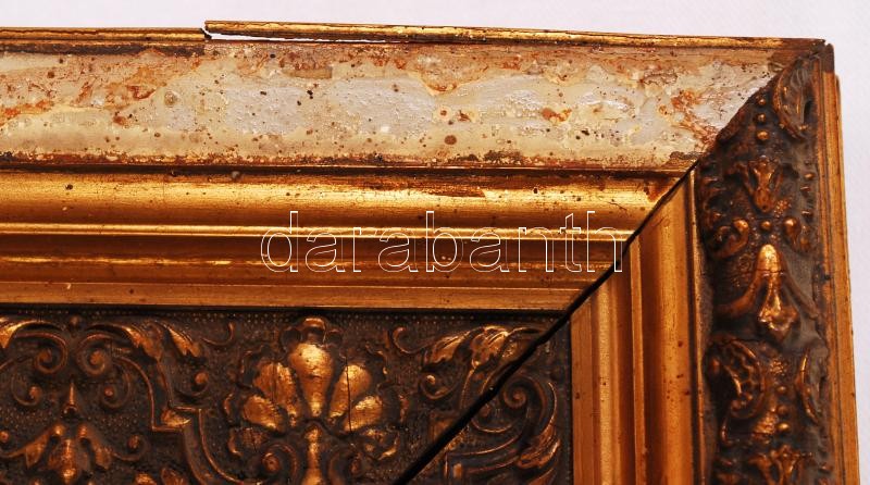 Beschreibung: id. Sándy Gyula (1827-1894): Sziklás hegycsúcs. Olaj, vászon, jelzés nélkül, antik sérült keretben, 60×45 cm