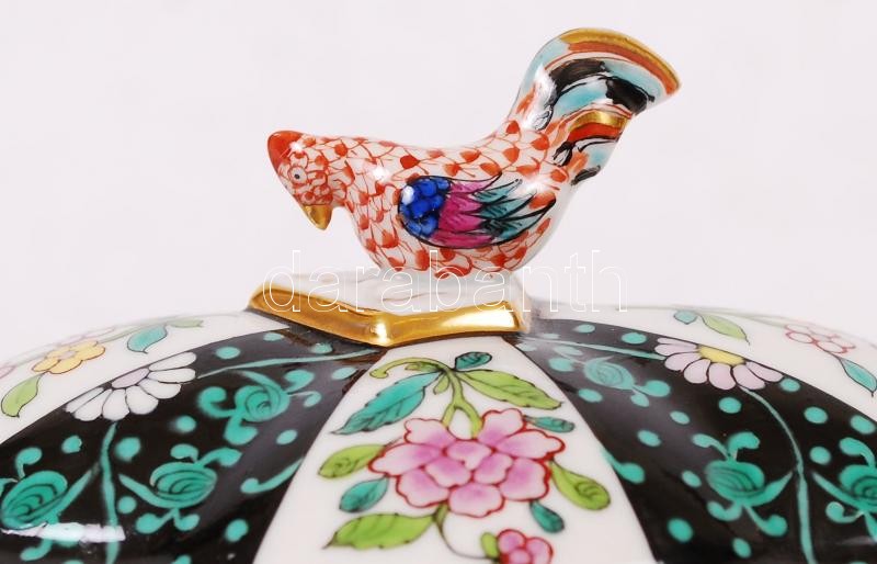 Beschreibung: Herendi porcelán bonbonier kakasos fogóval, kézzel festett, hibátlan, jelzett, h: 12 cm, m: 10 cm